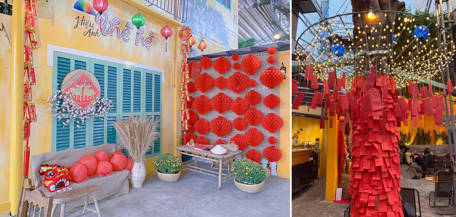 Ở Sài Gòn, chỉ cần nhìn vào cách trang trí quán cà phê là có thể đoán được các dịp đặc biệt trong năm: Giáng Sinh, Tết Nguyên Đán, Valentine, Halloween… Đây cũng là dịp để các bạn trẻ đến check-in, lưu lại những hình ảnh kỷ niệm trước khi không gian một lần nữa biến đổi theo mùa mới. Trong thời điểm Tết Nguyên Đán cận kề, nhiều quán cà phê tại Sài Gòn đã trang trí từ rất sớm, điểm tô sắc đỏ rực rỡ và hoa vàng tươi thắm cho từng con phố.